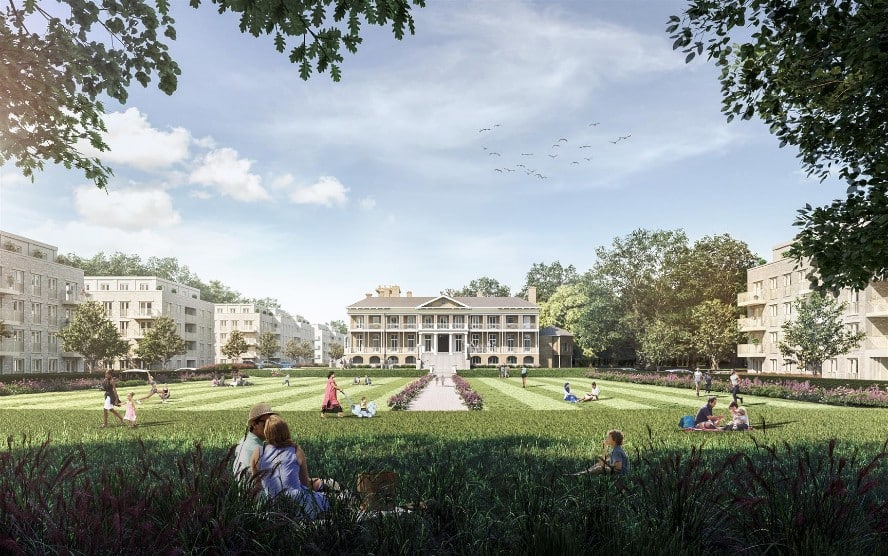 Creating a new 380 dwelling urban community centred around an existing Grade II listed pub, re-purposed as the gateway entrance to the scheme.