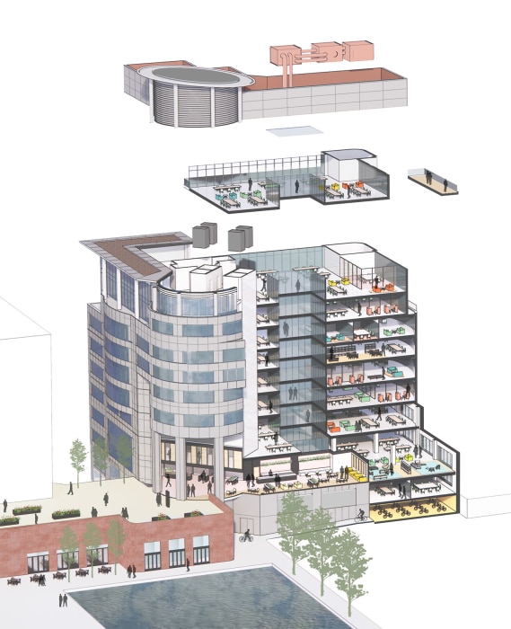 The second phase of regeneration for these epochal office buildings with extensions and transformative workplace interventions.