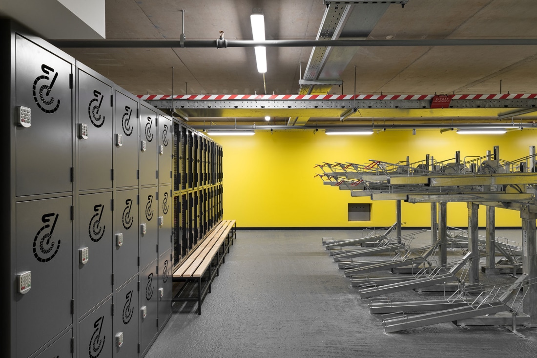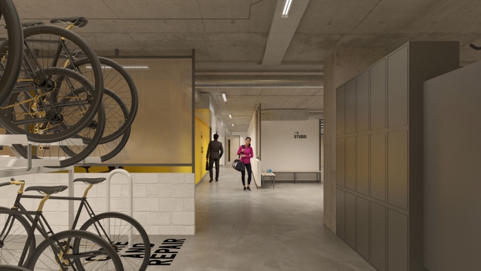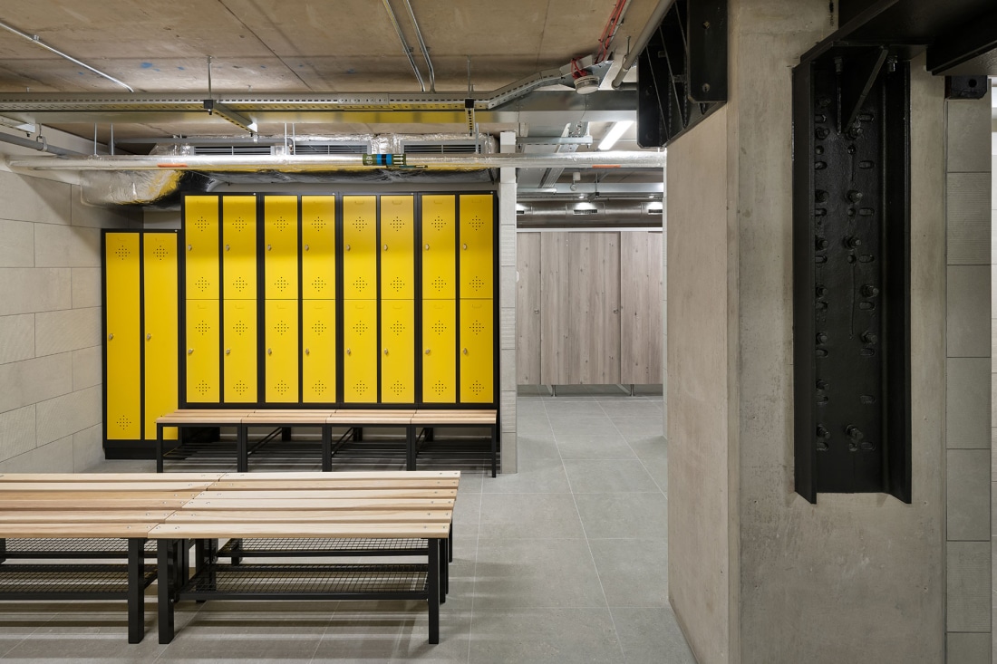 A large cycle hub with changing rooms, accessed directly from the street, is be created. This will better facilitate alternative and sustainable transport for building users. A flexible studio / gym and large changing rooms provide spaces to support the health and wellbeing of the users. In total, our proposals increase the office space from 135,000 to 143,600 sqft. The scheme was completed in 2021.