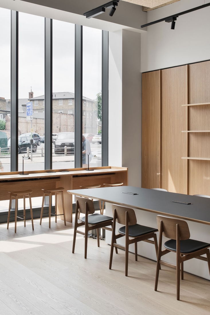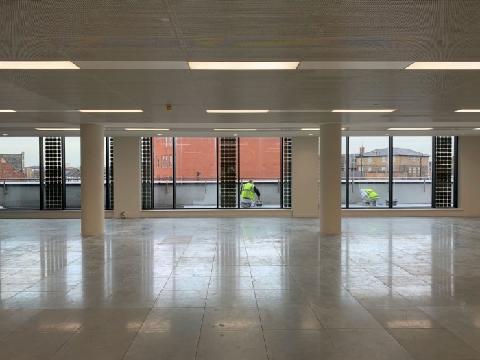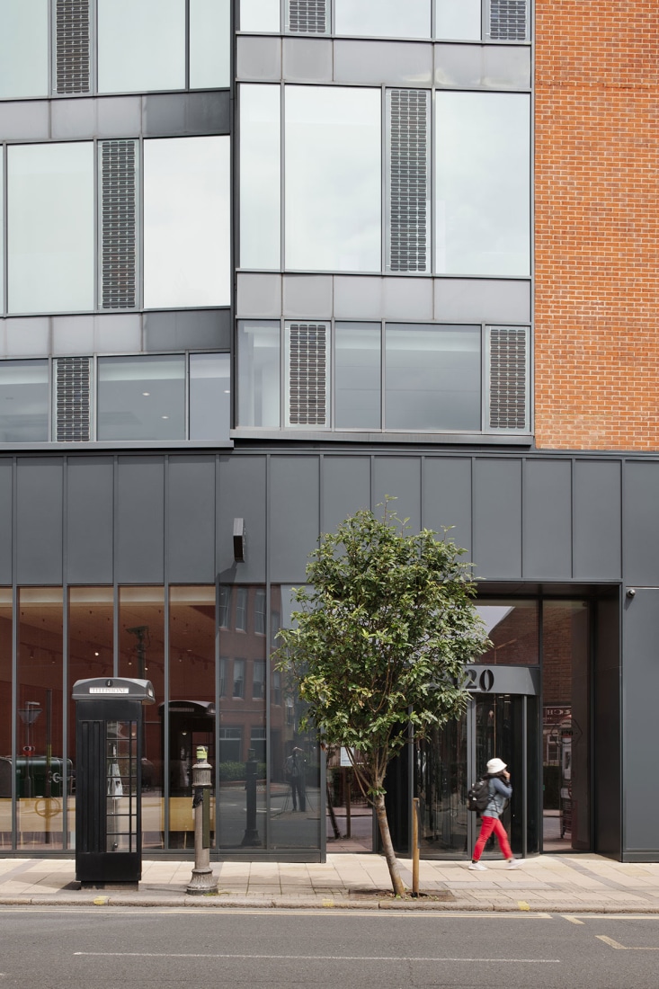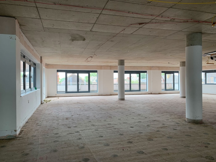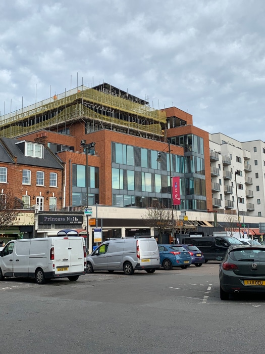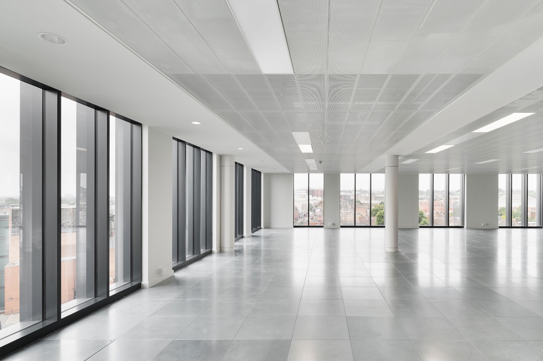 Our design included the creation of a new reception and workspace at ground floor, the complete replacement of all M&E installations within the building, and the creation of state-of-the-art occupier facilities including new showers and changing rooms. We also extend the building at the existing fifth floor level to create a new communal roof terrace. On the ground floor, we reconfigured the buildings entrance, providing a new independent commercial entrance. New doors and glazing were installed to the ground floor reception space and breakout spaces, providing activity and vibrancy, as well as function, to the street frontage of the building, where little exists at previously. A new vertical signage fascia provides identity from the town centre.