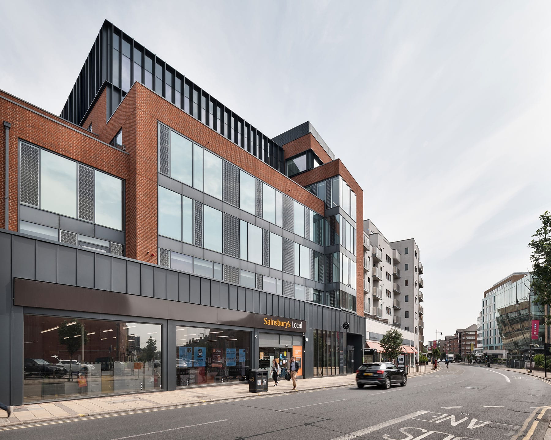 We developed proposals and supported the successful planning application for the comprehensive refurbishment of an existing office building at 120 The Broadway, Wimbledon. The building comprises circa. 70,000 sqft of office and ancillary accommodation above a Sainsbury’s supermarket and is located within the central area of Wimbledon Town Centre.