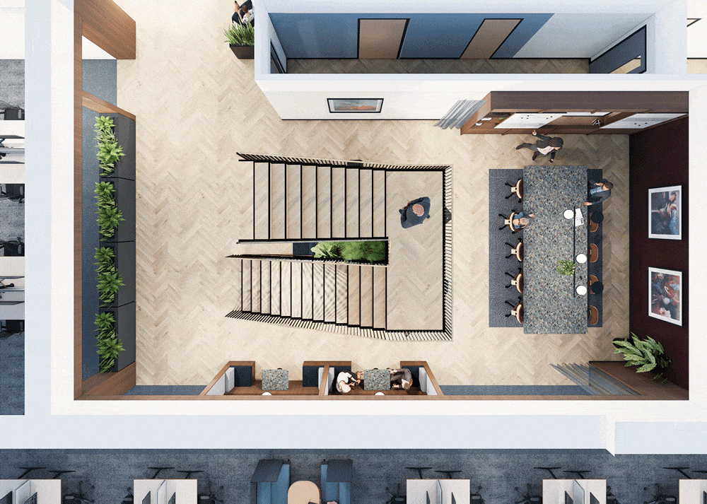 In addition to the interior design services, 5plus were commissioned to provide graphic design and visualisation services as well as leading on the procurement of furniture, planting, artwork and dressing of the space with accessories. 5plus also supported the change management process with the production of welcome material for new recruits.