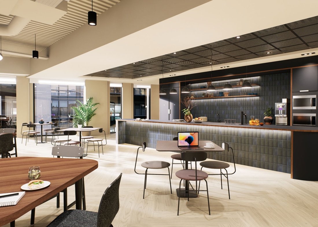 - Secondary café space – extends and enhances the hub offering providing supplementary breakout space