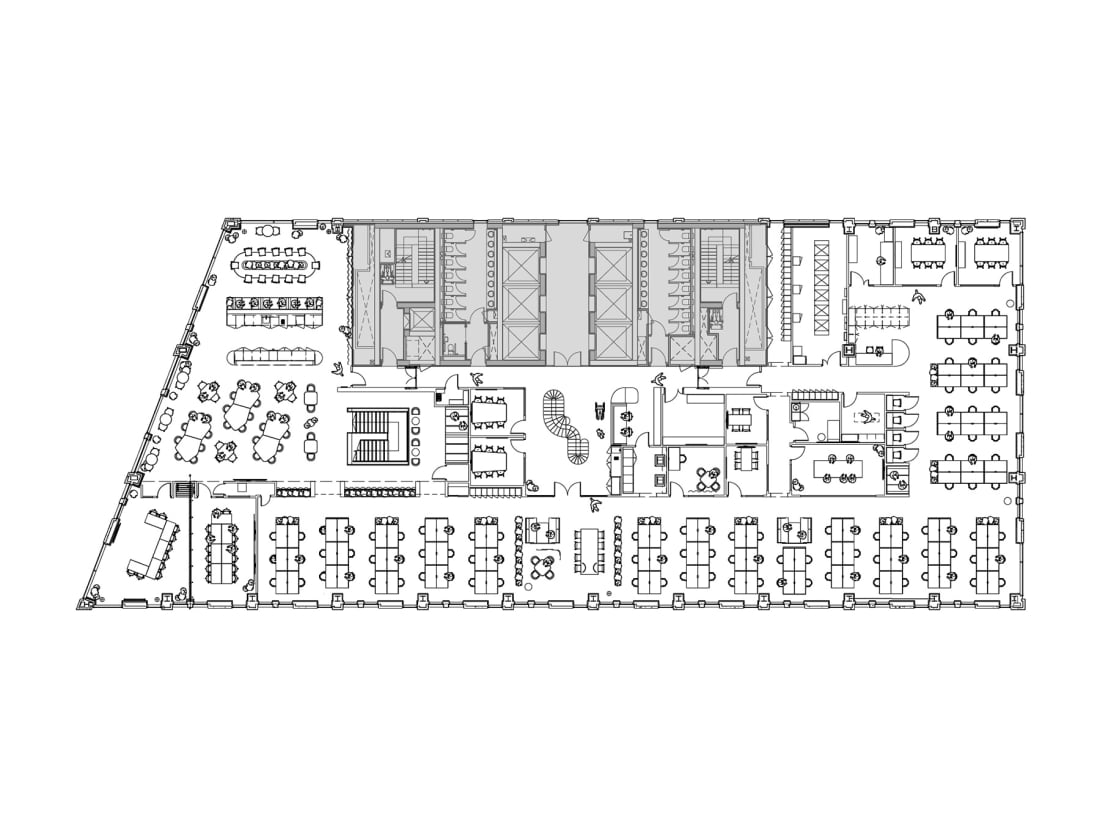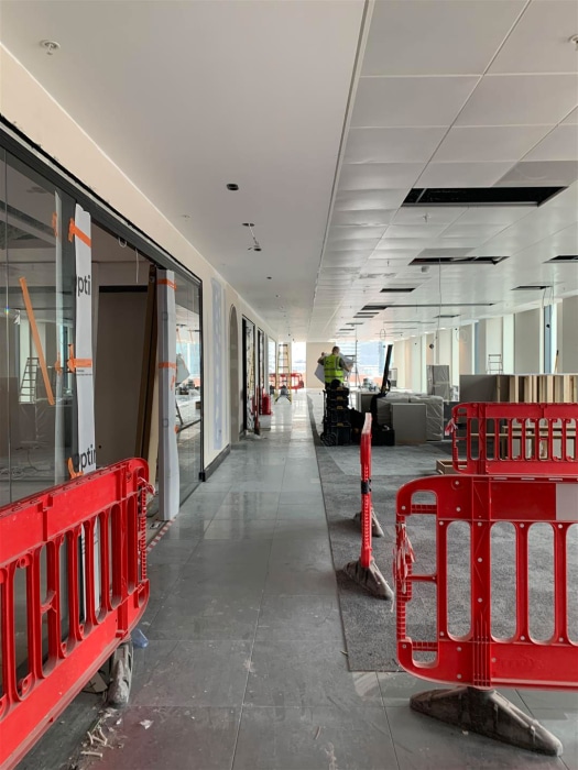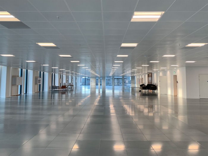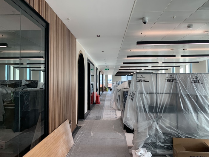 The interior fit-out comprises the following functions alongside adaptable workspace and collaborative work settings: