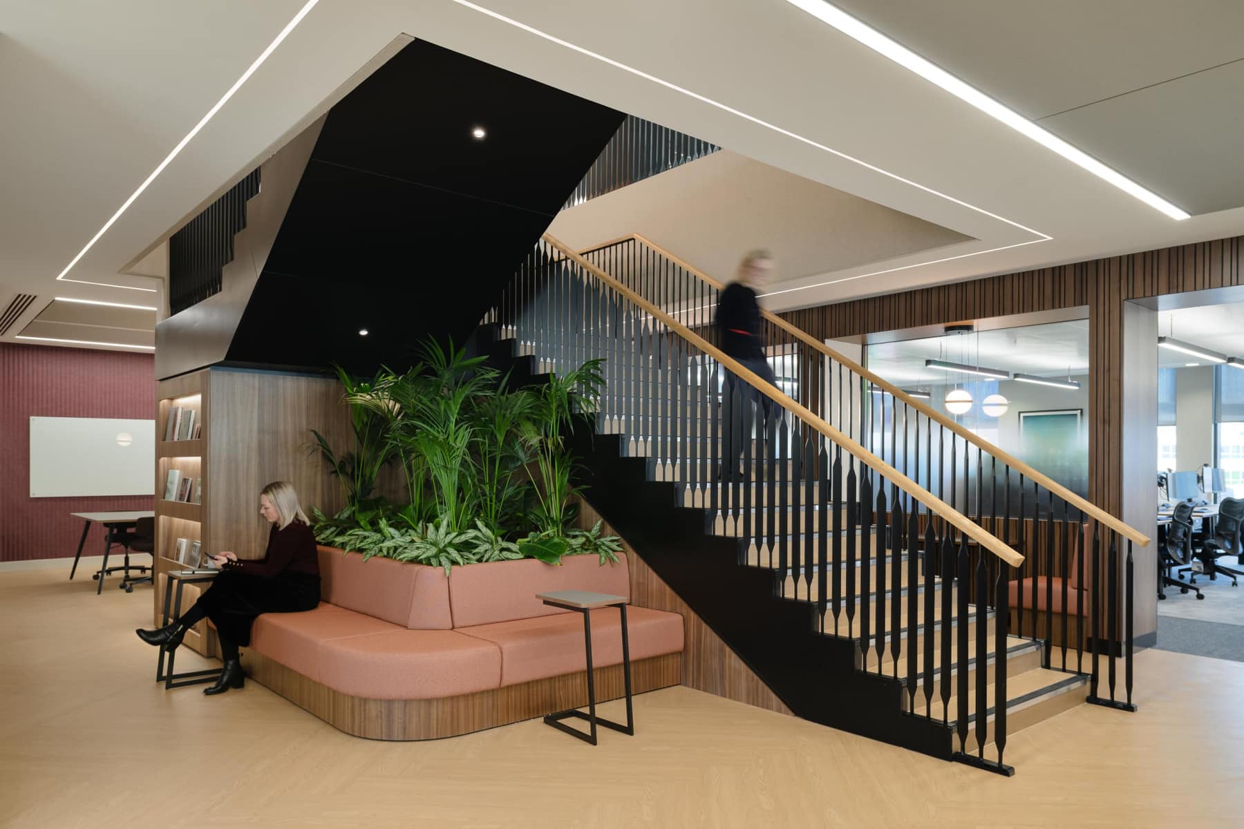 As part of this financial investors European expansion, we were engaged for the interior design of their new northern home. Located in Manchester’s high-profile city centre location, St Peter’s Square, the scheme will provides 28,000sqft over two floors of high-end sustainable fit-out, with a single floor in phase 1 completed in October 2023 and phase 2 introduces a feature accommodation stair to link an additional floor and completed in February 2025.