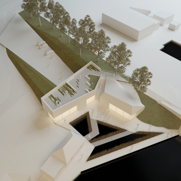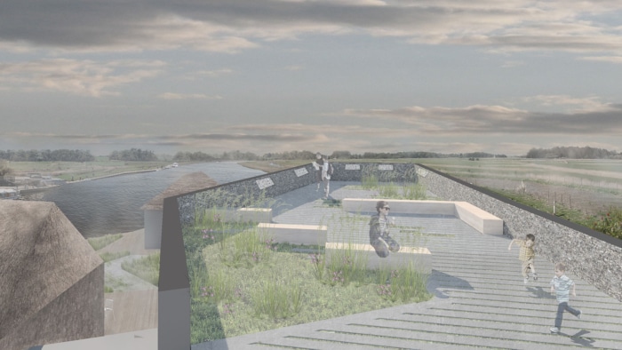 Manipulating the existing waters edge allows the river to merge into the heart of the site and enhances biodiversity through the introduction of a network of native emergent species. Elevated boardwalks allow visitors to pass through the reeds creating an immersive experience that is unique to the Broads.