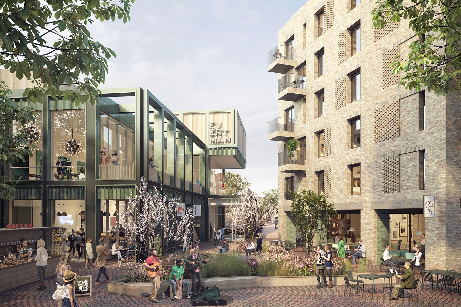 In responding to the development framework our sketch scheme comprised 200 dwellings including a range of 1-, 2- and 3-bedroom apartments and houses for private sale, social rent and shared ownership. Alongside the residential provision the scheme contains a vibrant mix of retail units, maker spaces, markets and cinema.