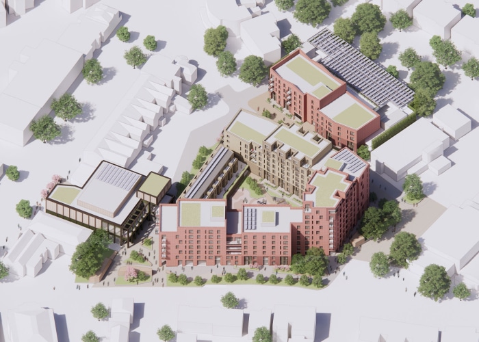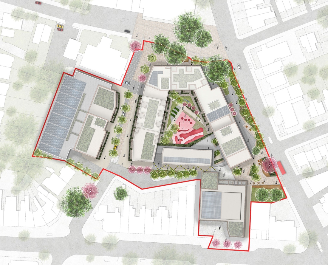 Residential-led, mixed-use regeneration of an outdated shopping centre.