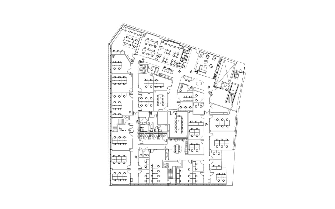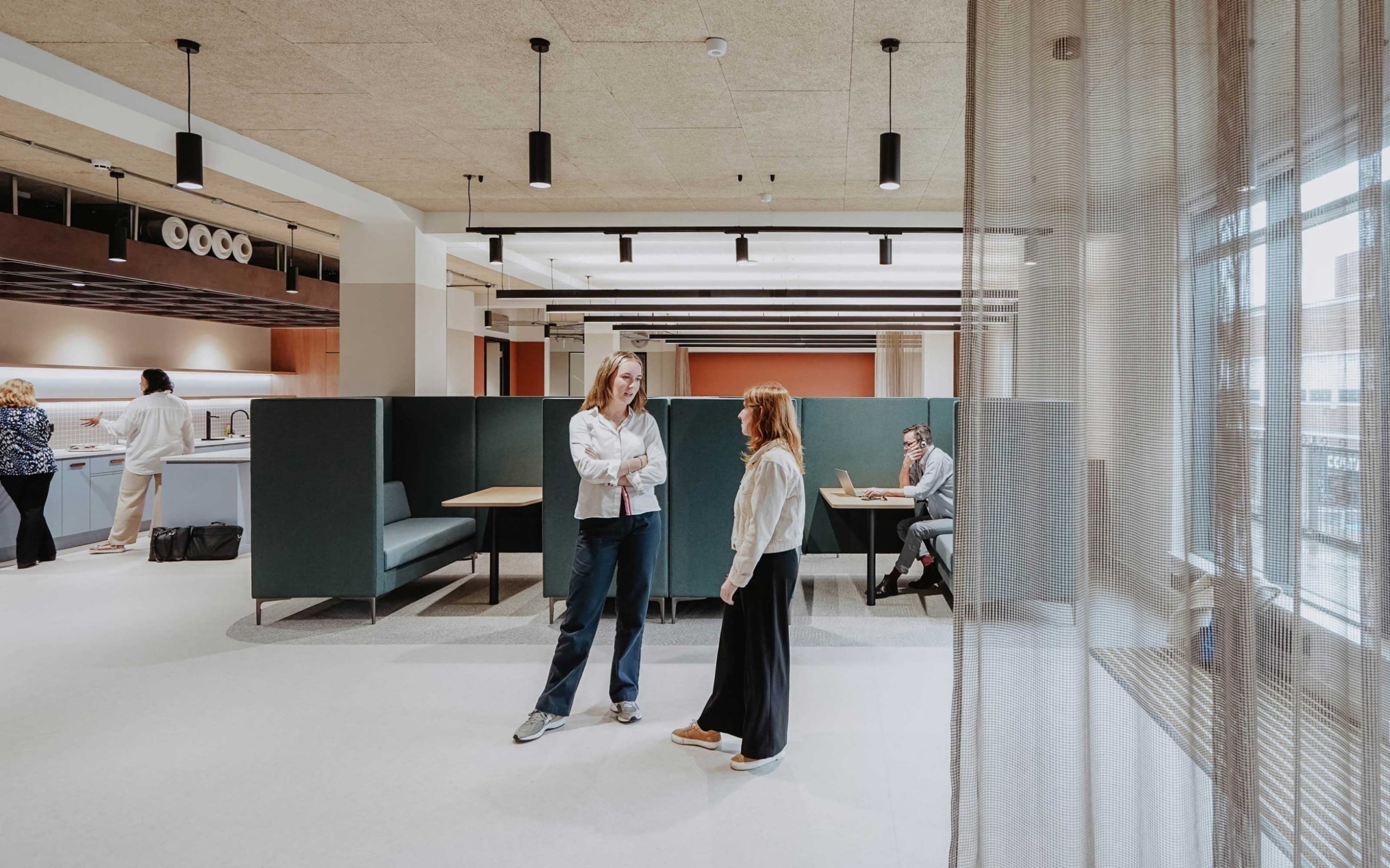 Refurbishment of existing retail space to create a co-working offering with private offices and supporting spaces.