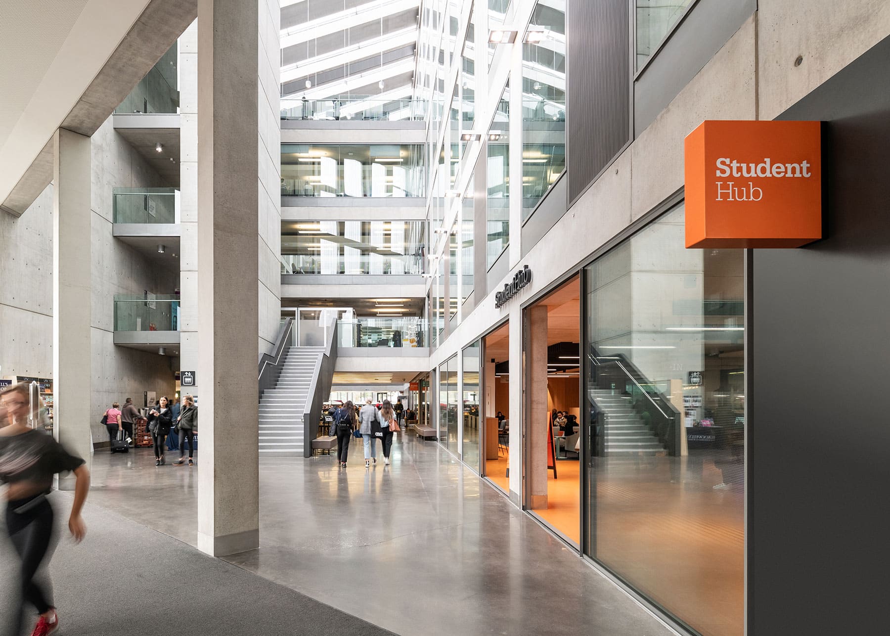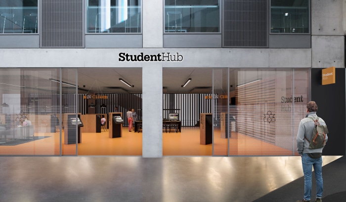 The project forms part of the Student Journey Transformation Programme (SJTP) and has resulted in a transformational new student support function. This comprises a predominantly online digital service, complemented by on-campus hubs, located in strategic locations.