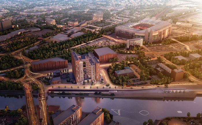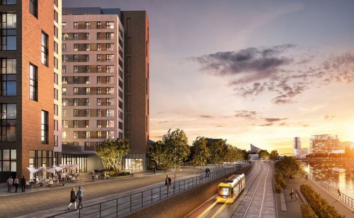 Regeneration of an underutilised site along the River Irwell, delivering a new 354 dwelling gateway in Trafford Wharf.