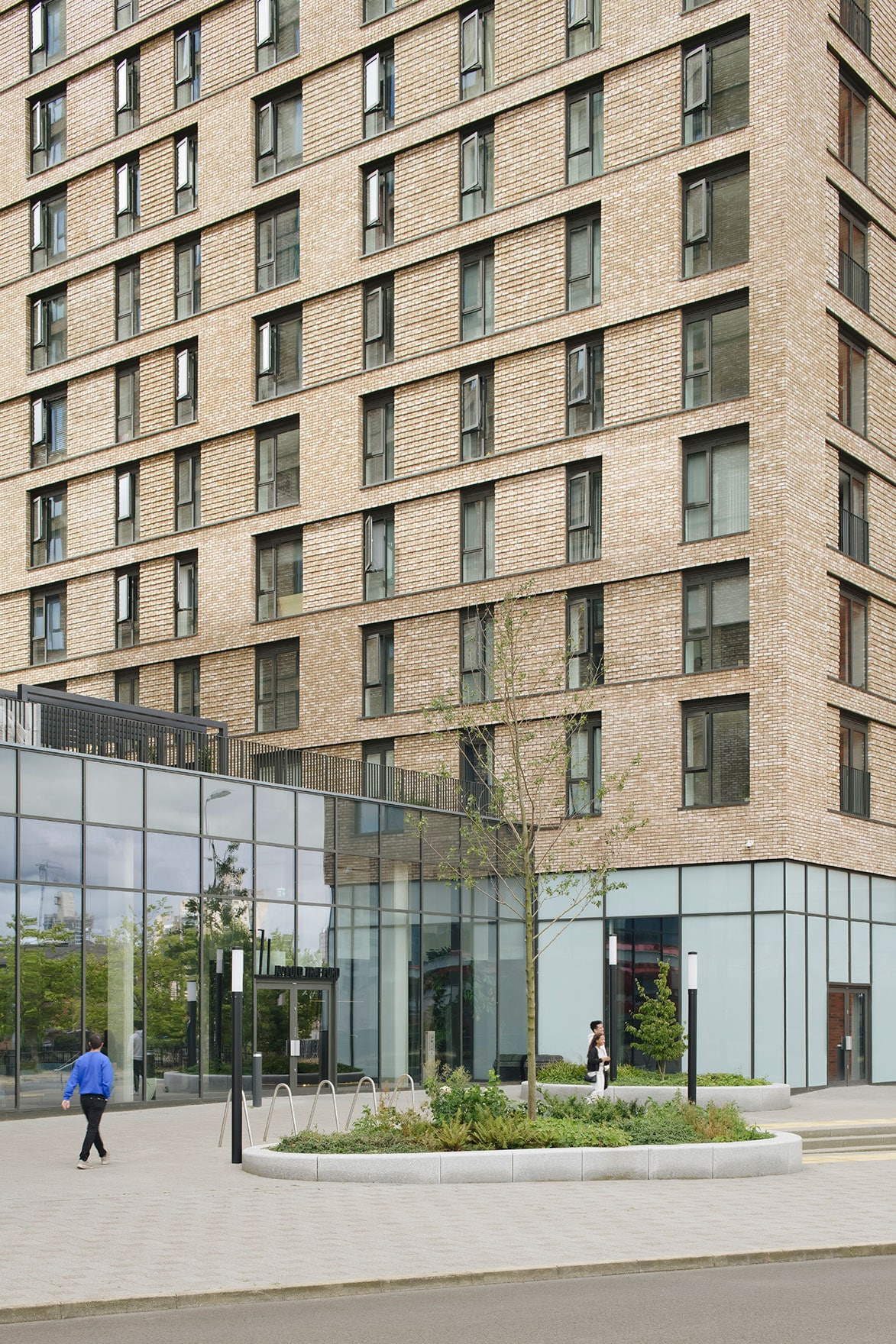 The design concept is of a pair of slim linear buildings, each with an outer formal brick elevation facing the street and urban surrounding, and a light and ‘playful’ inner elevation facing a podium garden. The simplicity of the form, the contrasting and complementary elements of the building, and the careful articulation of façade and openings has resulted in a building which is understated yet sophisticated and appropriate to the urban nature of the site.