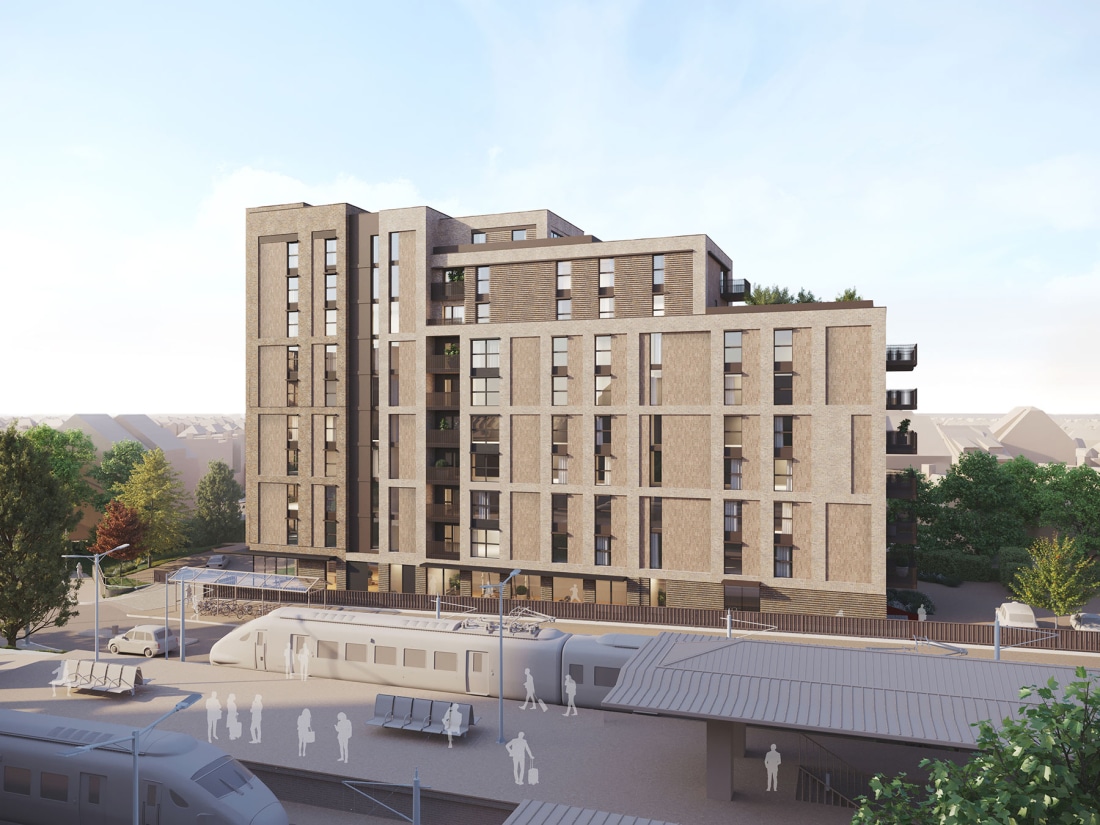The building will make a positive contribution to its immediate and wider environment with an architectural design response that is not only viable and deliverable, but also memorable and visually appealing. The building rises to a maximum of 10 storeys at its main entrance, and this elegant and slender frontage manifest a local landmark and perhaps represents a greater opportunity for the wider station car park site as car parking demands reduce in the future.