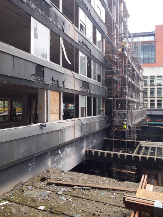Sustainability issues run through this significant retrofit project with a key aspiration to maintain as much as possible of the existing building. Typically, around 50-60% of all embodied carbon within a new building is contained within the foundations and superstructure, so refurbishing the building rather than demolishing it dramatically reduced the carbon footprint of the project. The retained existing concrete frame has an irregular grid and low floor to ceiling heights and despite there also being abundant asbestos findings, underused basement facilities and redundant cladding structures, maintaining the existing structure to its fullest was considered “the right thing to do”.