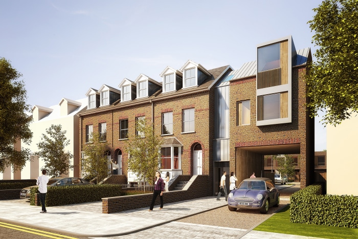 We successfully developed and realised proposals for the redevelopment of a former petrol station into eight new homes on a contained site on Kingston Road, Teddington. Our scheme responds strongly to the site context and consists of 7 houses and 1 duplex apartment.