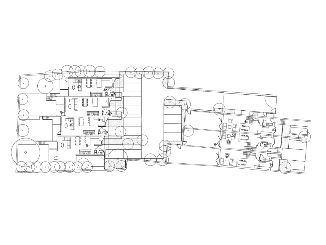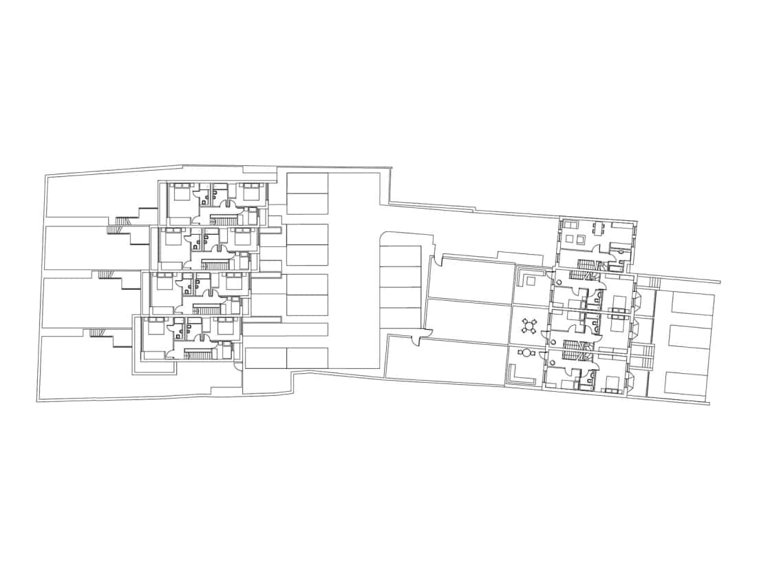 The scheme is broken down into 3 separate typologies, each of which responds to its locality within the site and the surrounding buildings. The dwellings are arranged in a coherent and contextual manner with the simple principles defined above establishing an order and a rational urban setting for the site.