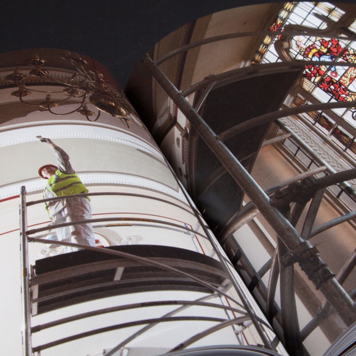Our proposals answer the functional requirements whilst preserving and distilling the unique character of the space. Capacity is increased through new seat and desk design and improved access. The environmental systems and air quality were improved with fresh air discretely supplied through new floor void plenums and extraction taken through existing grilles in the domed ceiling. IT facilities for voting, screens and improved lighting were sensitively integrated to provide a state of the art facility to support the democratic process.
