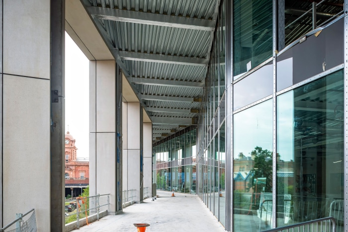 Our design carefully responds to the site’s immediate context which includes the grade II* listed Nottingham Station and surrounding heritage assets. The Phase 1 building is characterised by shifting bands of aluminium cladding which are orientated to create visual animation as the sun path tracks around the facade. This captures and reflects the shifting light patterns to provide a modern facade which echoes the decorative Victorian architecture of heritage buildings adjacent.