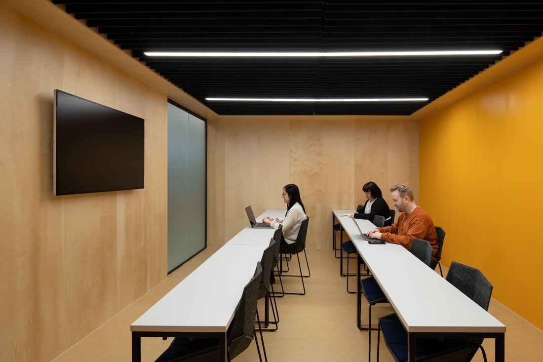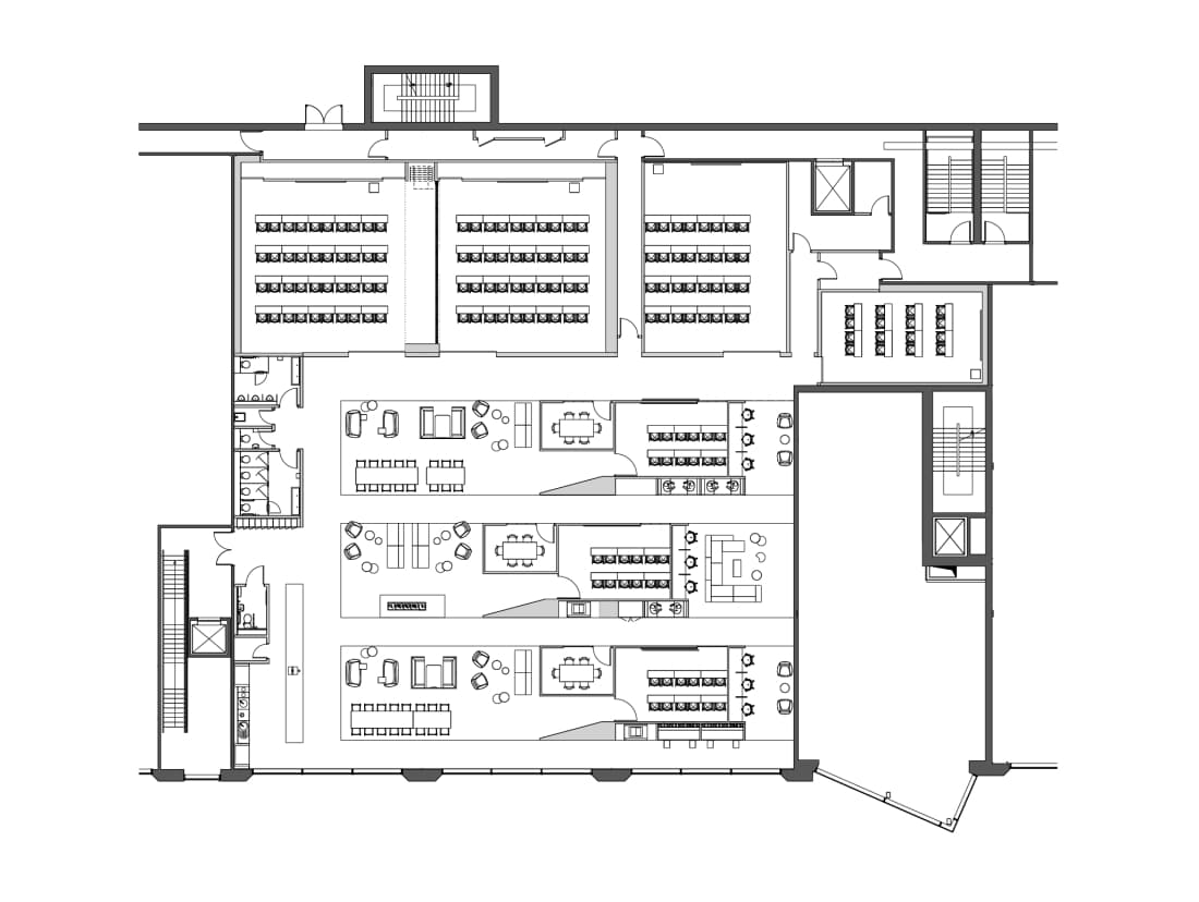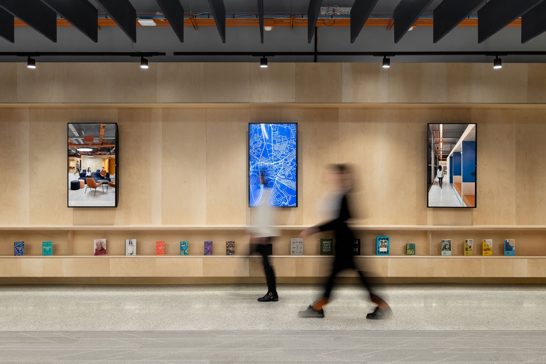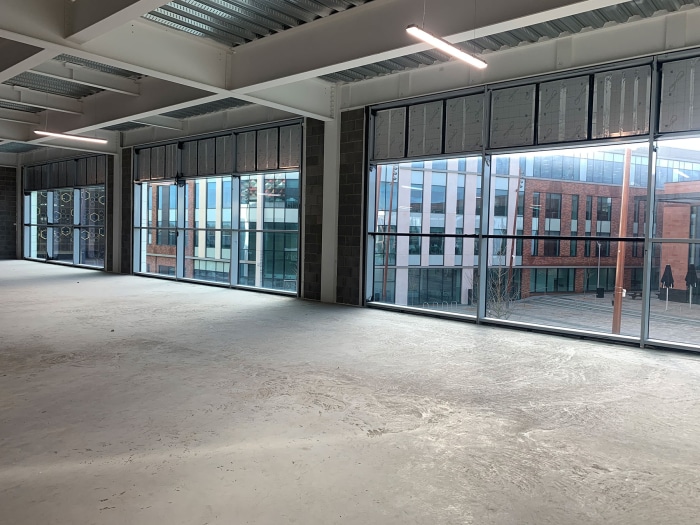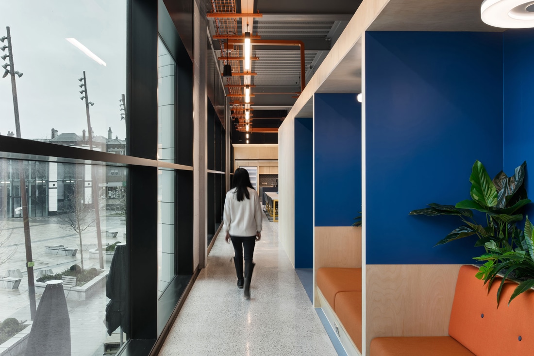 The project is comprised of a highly flexible fit-out of agile learning spaces, digital hub and student services offer totalling 15,000 sqft of space. At ground floor, the vision is to create a digitally rich environment which can promote the University as well as engage with the current student intake as well as the public.