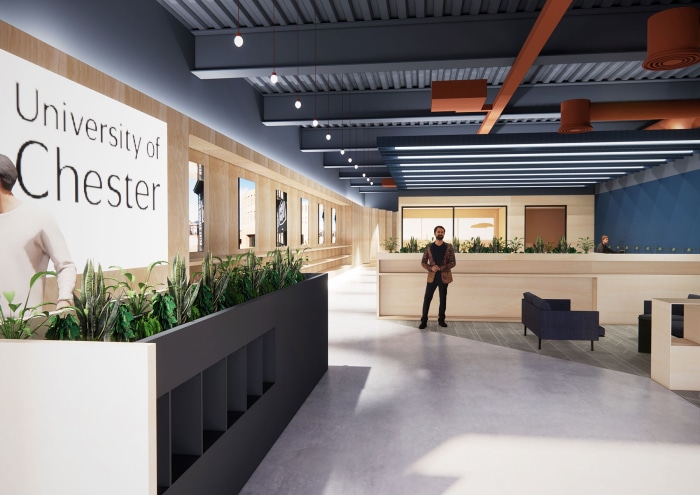 Deep retrofit and re-purpose of redundant town centre retail space to create a new dynamic studying facility for the University of Chester.
