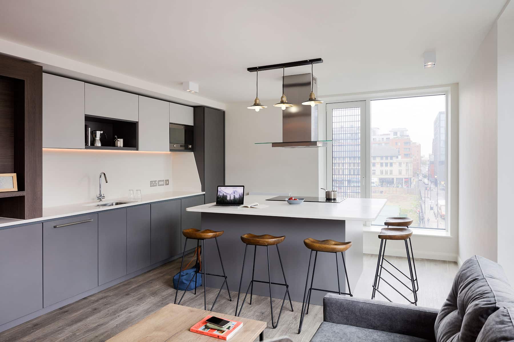 Vita Student is a luxury serviced accommodation development that offers private living for a growing number of international, undergraduate and post-graduate students studying at the Manchester’s universities. Completed in 2019, the project delivered 282,770 sqft of space comprising of 716 purpose built student accommodation units across two buildings, with a mix of 576 studio apartments and 140 cluster bedrooms contained within a five bedroom cluster apartment.
