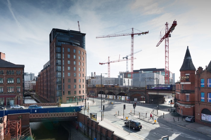 The building forms part of the First Street Masterplan which provides a new home for the Cornerhouse and Library theatres a 4* hotel, a 700 space car park, associated restaurants and bars and a generous public realm. The building provides 279 studios and communal areas over 11 storeys. Each self-contained studio has luxury facilities and fittings, creating a living environment similar to a long stay hotel.