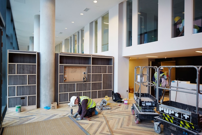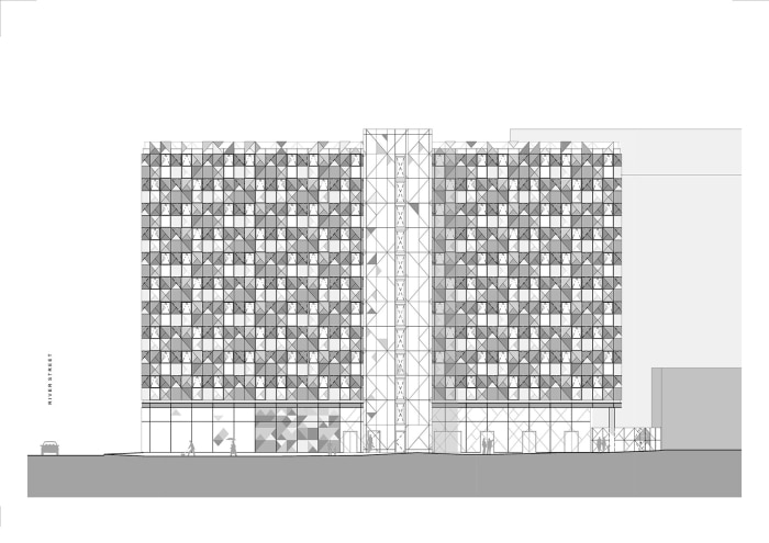 External brise soleil amplify aspects of the grid and hint at the originating motif. With a rich colour palette, and subtle changes to the texture, finish, reflectance and transparency, the façade becomes animated, vibrant and diverse. It regularly changes with light and shade, day and night providing a sense of movement.