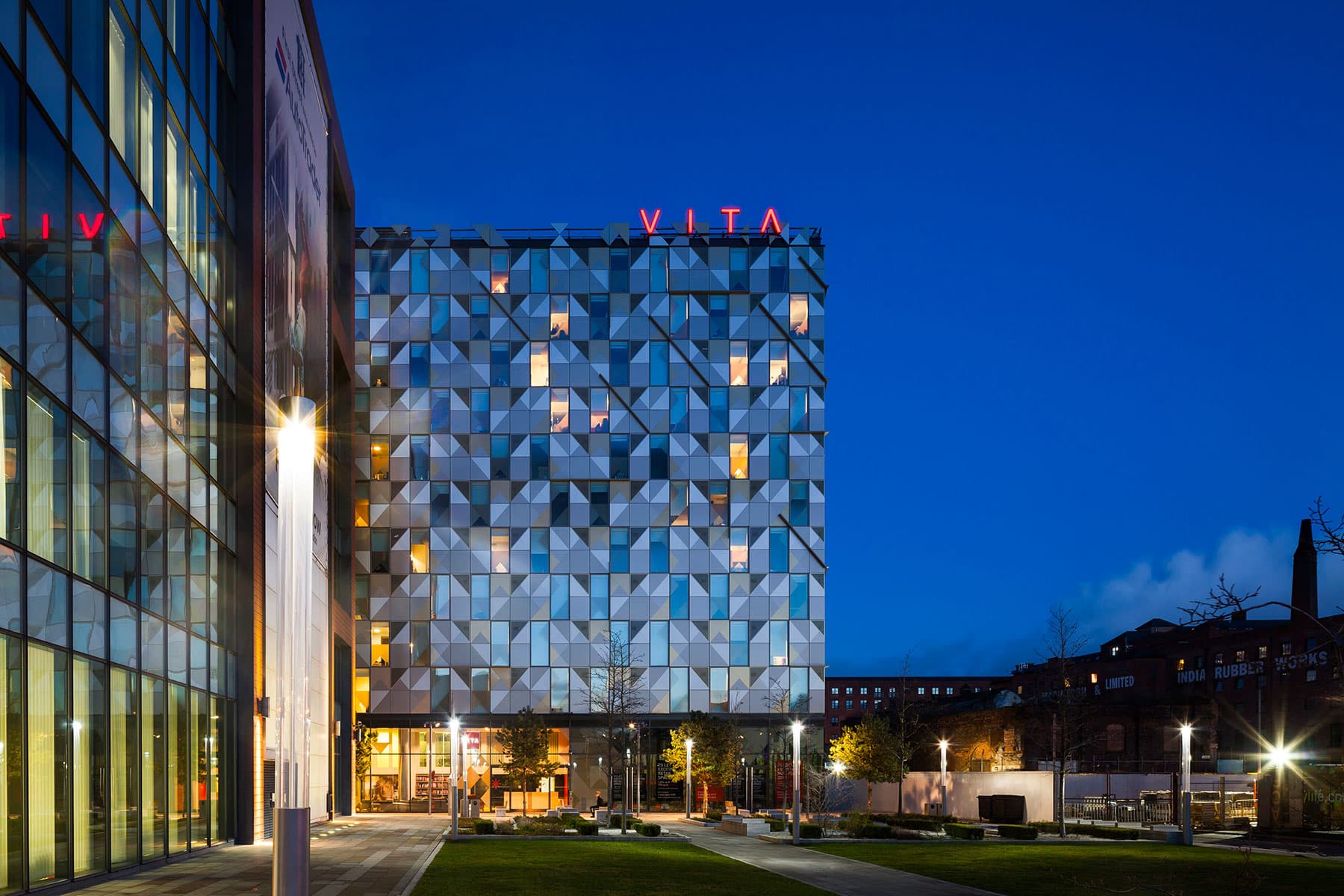 Vita Student is a luxury serviced accommodation development that offers private living for a growing number of international and post-graduate students studying at the universities of Manchester. This is the first new-build Vita Student in the UK.