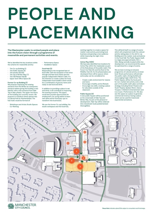 Responding to a recognised lack of food offer, the intention is to create a place for local, independent food retailers which would be a combination of grocery items and ready to eat food and drink. In addition to providing a place to eat and drink, it will contribute to improving the evening economy. The masterplan also aims to increase opportunities for local employment and training through the diversification of the high street and the creation of new employment opportunities in IT/ Data technology and Creative Co-working.